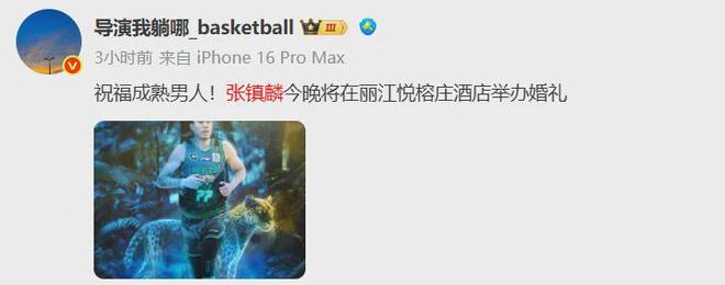 说说没参加今年全运会的张镇麟,大喜日子即将到来,将在丽江悦榕庄酒店举办婚礼。